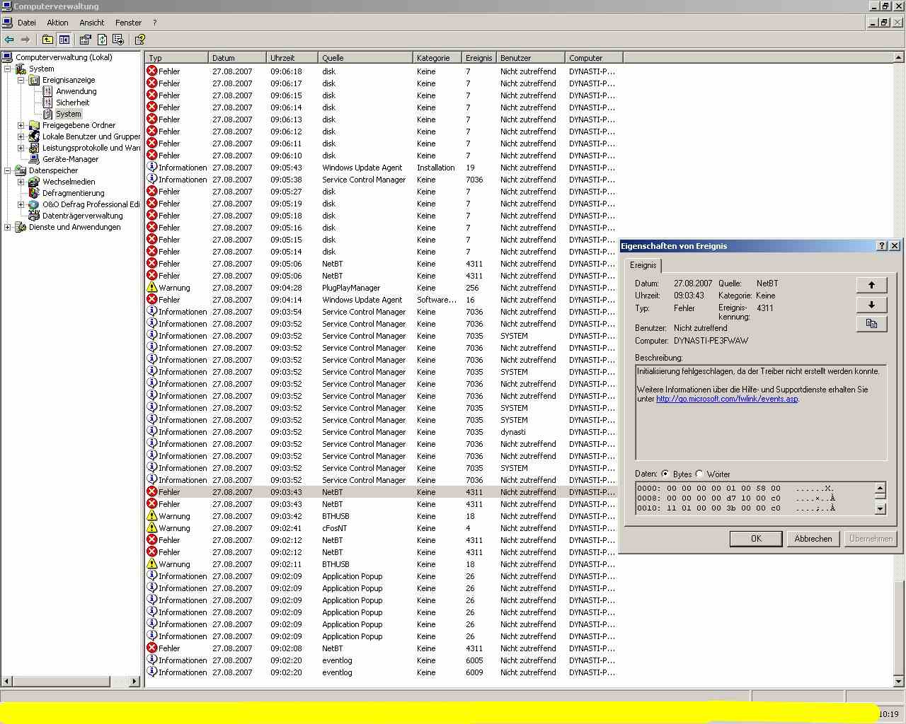 Woran liegt es , dass (siehe Screen) ich in der Ereignisanzeige immer diesen NetBt Fehler angezeigt bekomme ?