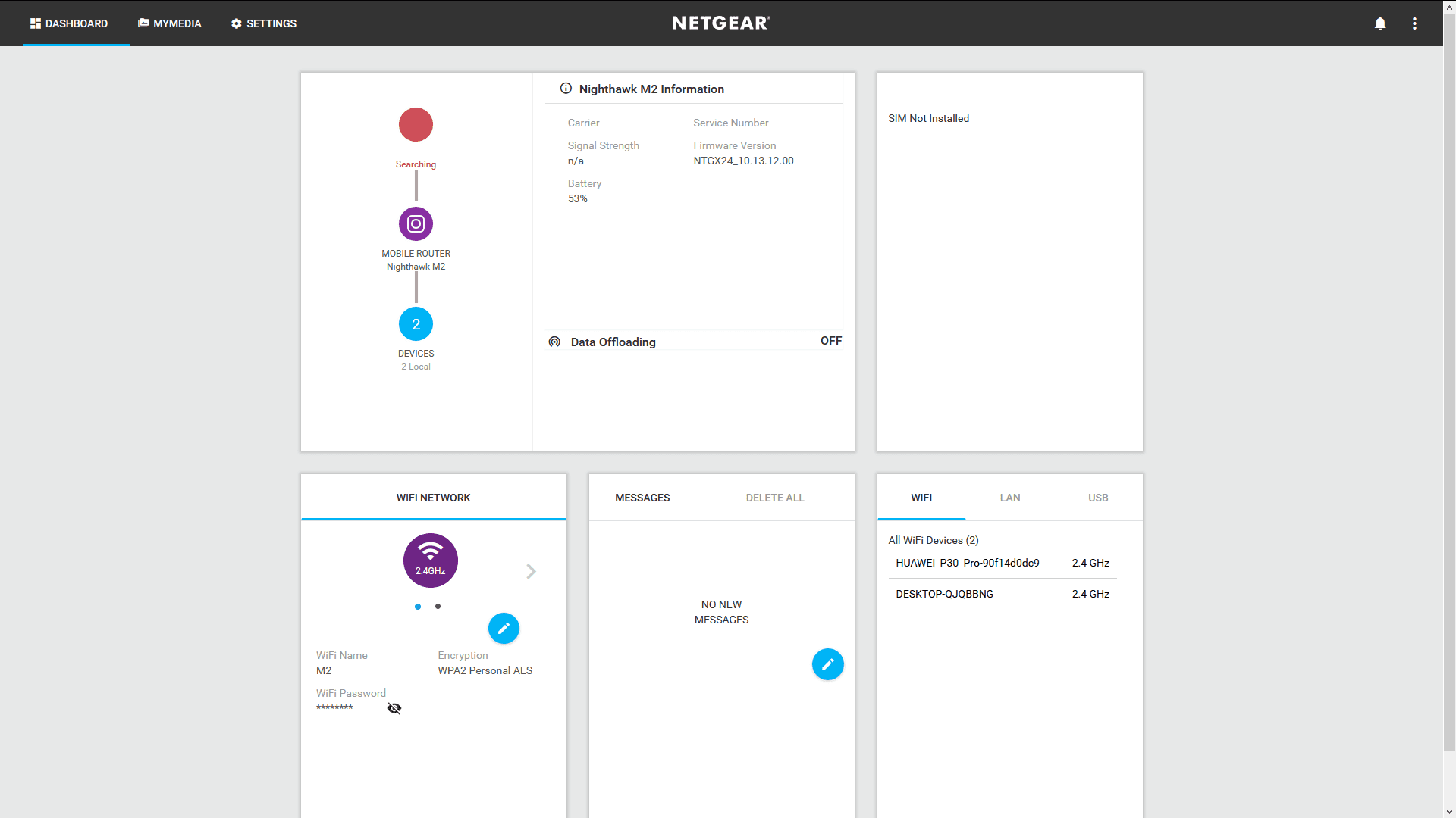 Zuerst SIM-Karte einbauen, Akku einlegen, Abdeckung anbringen und dann kann man das Gerät starten. Nach einer kurzen Begrüßung kommt eine Aufforderung ein WLAN-Namen bzw. und ein WLAN-Passwort zu vergeben und ein Admin-Konto bzw. ein Passwort dafür anzulegen. Nach erfolgreicher Anmeldung kann man bereits das Menü auf dem M2 aufrufen. Man erreicht das Webinterface des Gerätes über die IP-Adresse 192.168.1.1 und benötigt zur Administration das Admin-Konto. Alternativ kann man das Gerät ebenfalls sehr gut über die Netgear Mobile App vewarlten. Sowohl App, als auch Webinterface sind einfach aufgebaut und selbsterklärend.