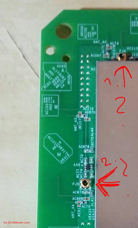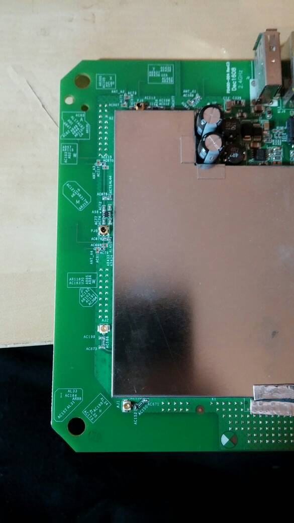 Ich baue meinen netgear wndrmacv2 grade auf extern schraubbare Antennen um und da sind mir zwei weitere interne Anschlüsse aufgefallen. Ich habe sie mal rot markiert. Hat jemand eine Ahnung für was die beiden sein könnten ? Die unteren sind für die Antennen , aber was können die anderen ? HM..