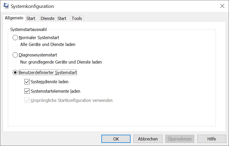 Denke daran wenn du wieder in den normalen Modus möchtest stelle an der gleichen Stelle wieder um auf "Normaler Systemstart", bevor du den Rechner neu startest.