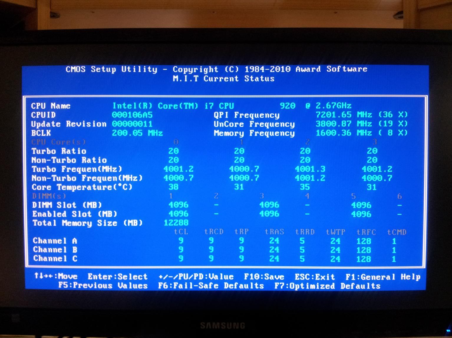 Was aber voher auf dem Asus ohne Probleme Lief. ist eine Core i7 920 (D0) und 3 x 4 GB DDR3 1600 9-9-9-24 Quad 2T