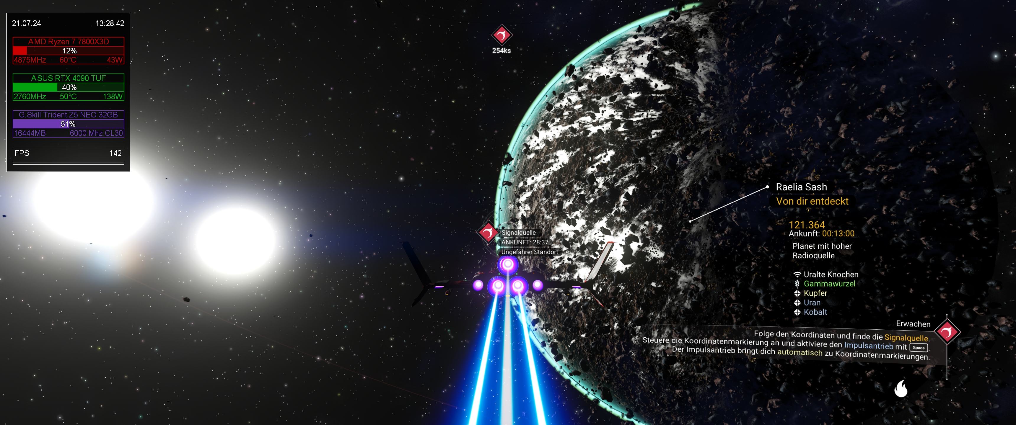 Inzwischen bin ich auch mehr durch die Gegend gewarpt, hab Gefallen an Raumkämpfen gefunden und nutze Aufträge die mich in entfernte Sonnensysteme führen um auf dem Weg dorthin die Planeten zu erkunden.