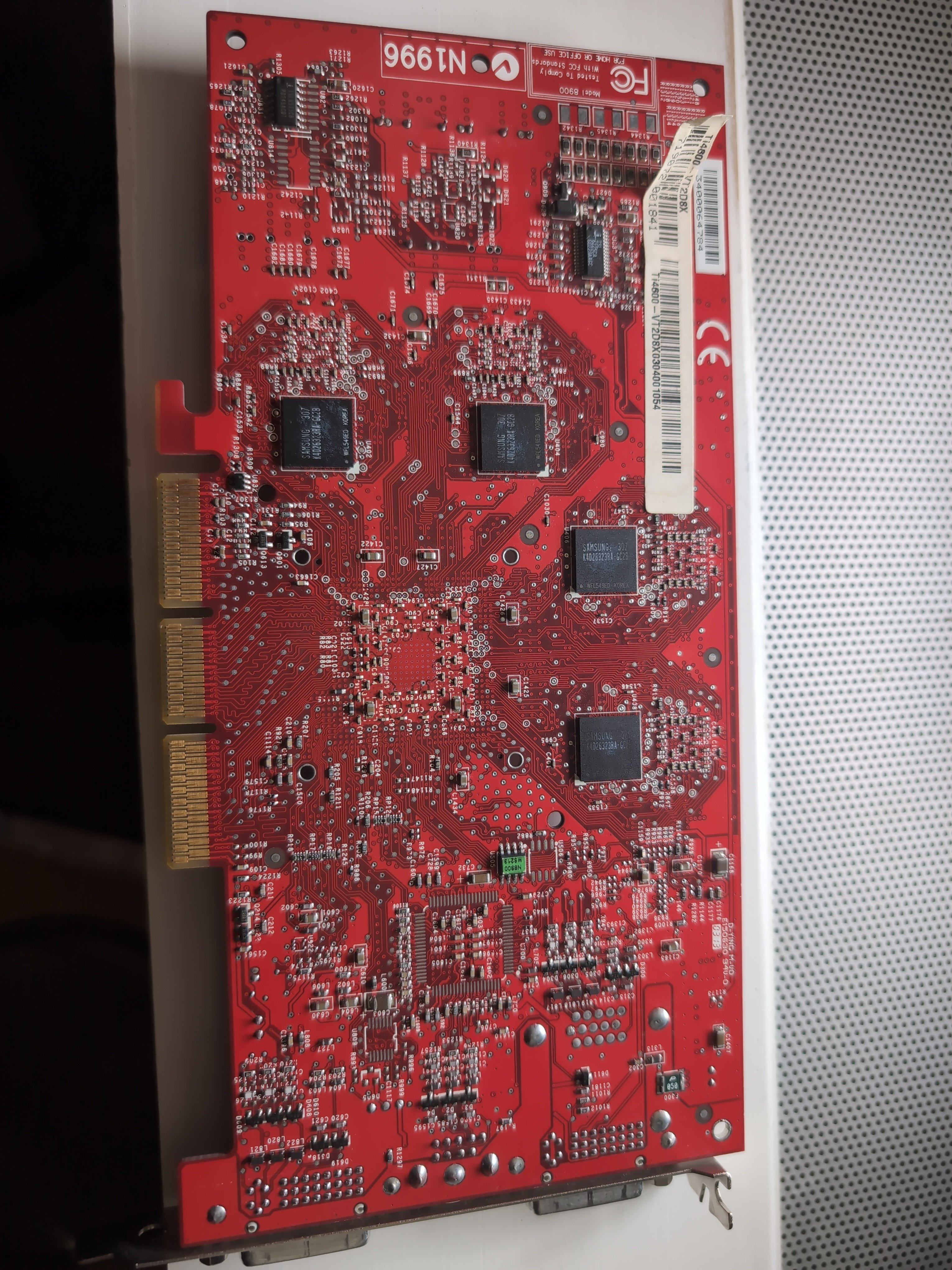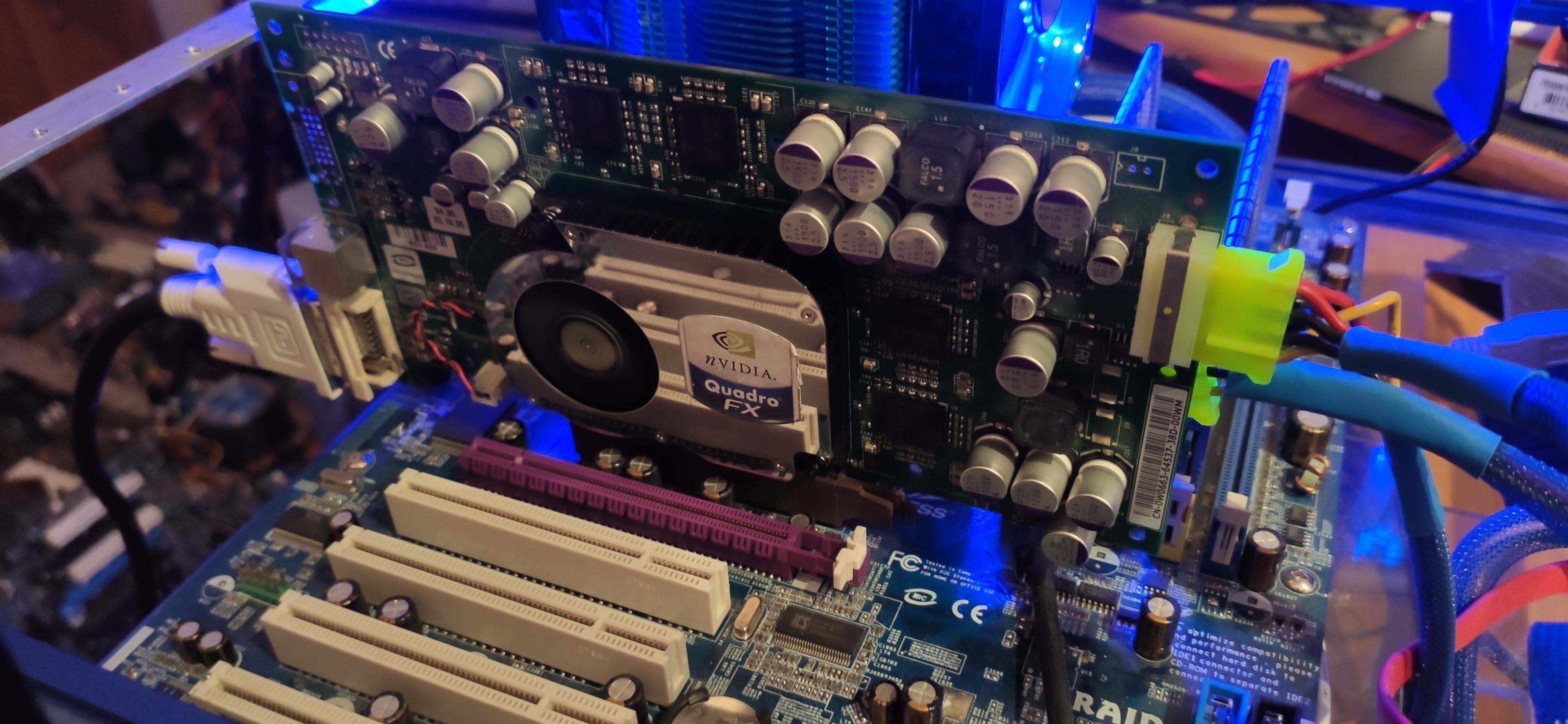 Karte stellte sich natürlich tot, war ja geräubert. Nach Komplettierung der wichtigsten Bauteile, kam zumindest auf dem oberen DVI Bild. Der untere konnte nicht gehen, der war hart geräubert.