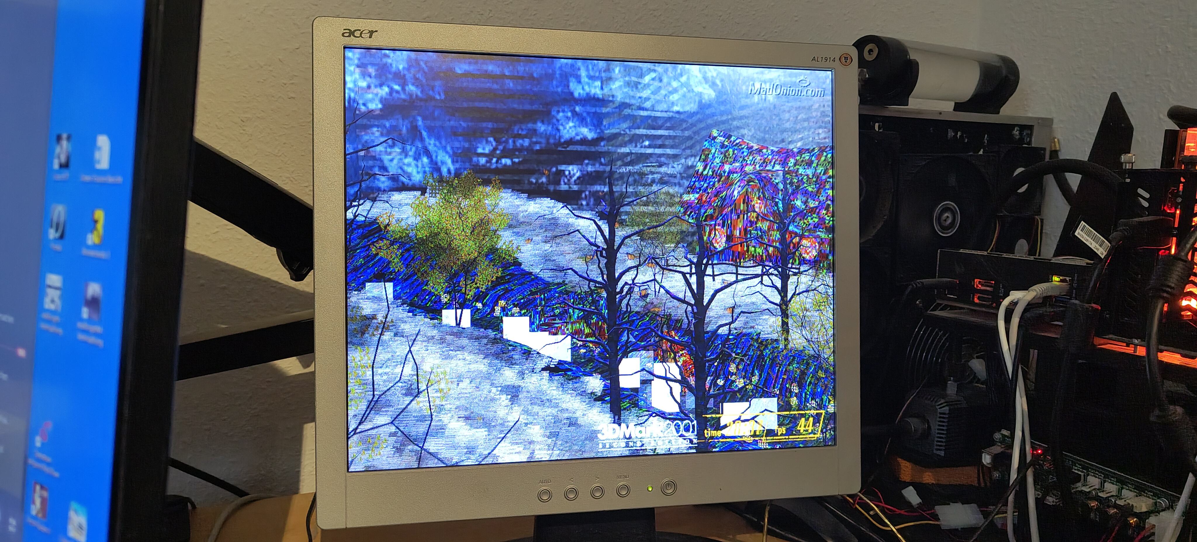 Karte bringt Bild! Voll geil, das heißt, dass die 22 Jahre gelagerten, und nie verwendeten GPUs an sich funktionieren. Wie vorher ist das Bild in 2D fehlerfrei.