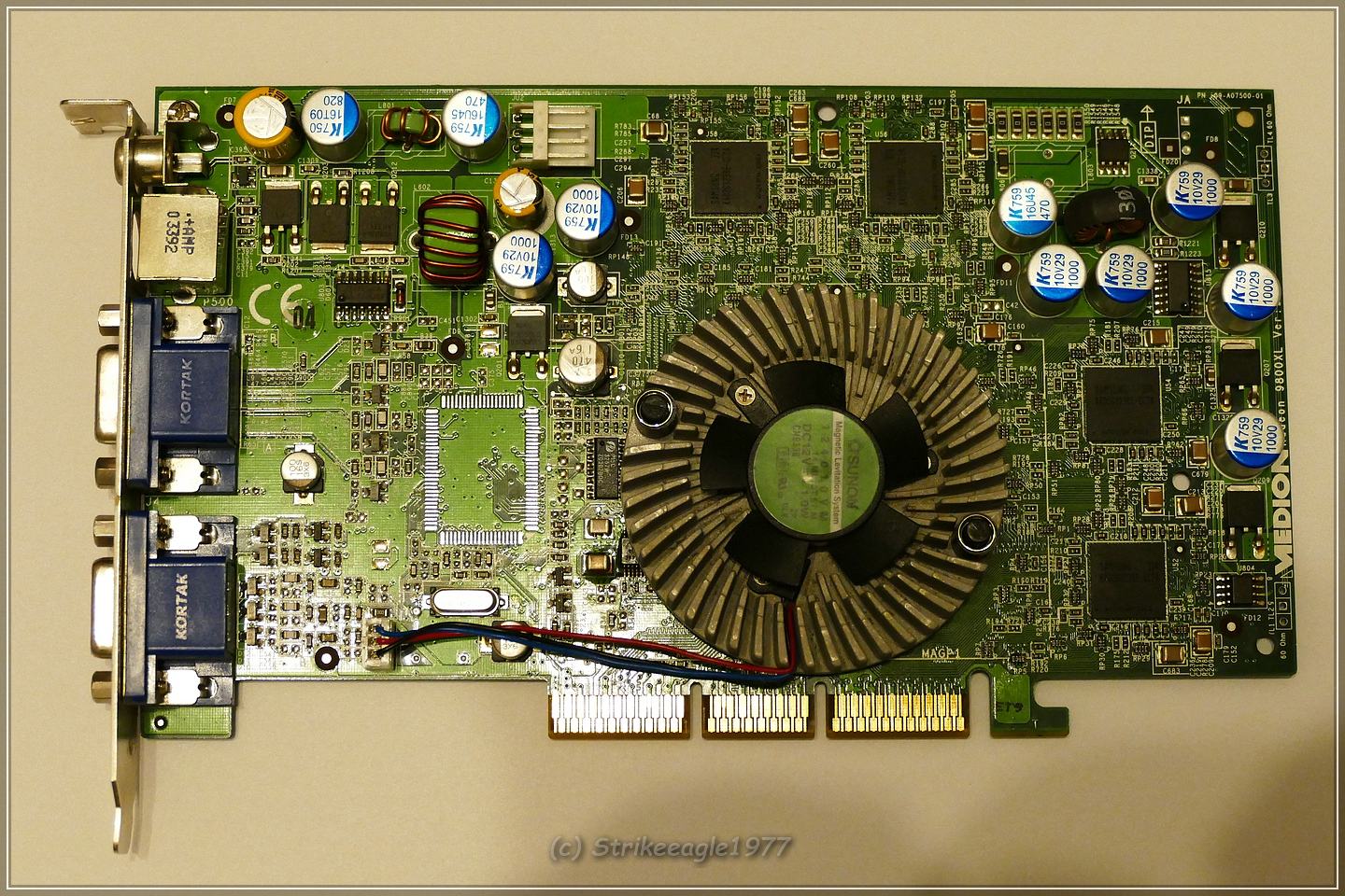 Vor ca. einem halben Jahr: Die Karte funktionierte an sich, hatte aber so ganz merkwürdige Bildfehler in 3D. Der FPS Counter in 3D Mark 03 war verzerrt, der Rest des Bildes war ok.