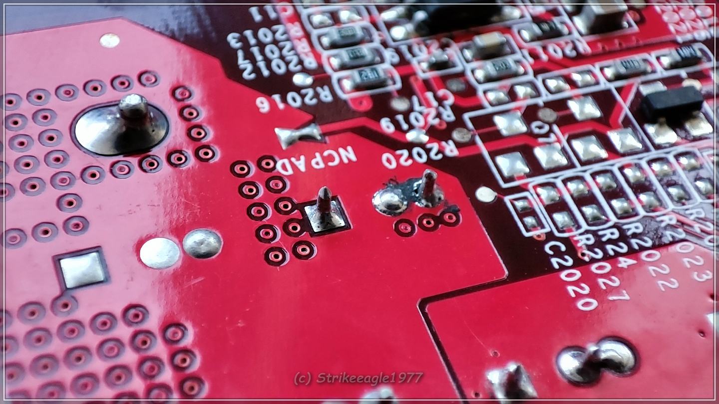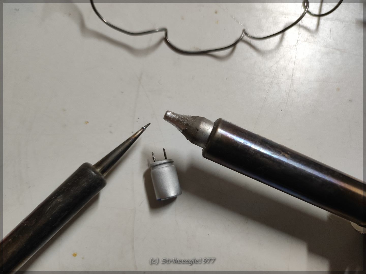 Ich habe keine gescheite Entlötpistole. Für den Kondensatortauch mache ich das alte Lot nicht weg. Ich lass das drin.