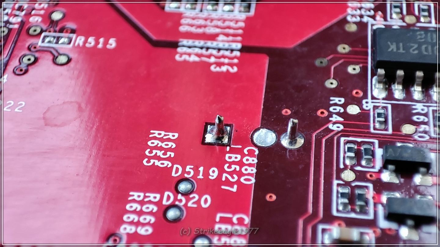Aber schmal, warum machst du die Löcher überhaupt frei? Ich packe mir einen Blob Lötzinn in die Entlötpistole, stülpe über das Beinchen drüber (mit minimal Luft zwischen Platine und spitze!) und dann ziehe ich abwechselnd die beiden Beinen des Elkosein paar Millimeter, bis er draußen ist. Dann den neuen Cap ins Loch auf die gleiche Art wieder rein.