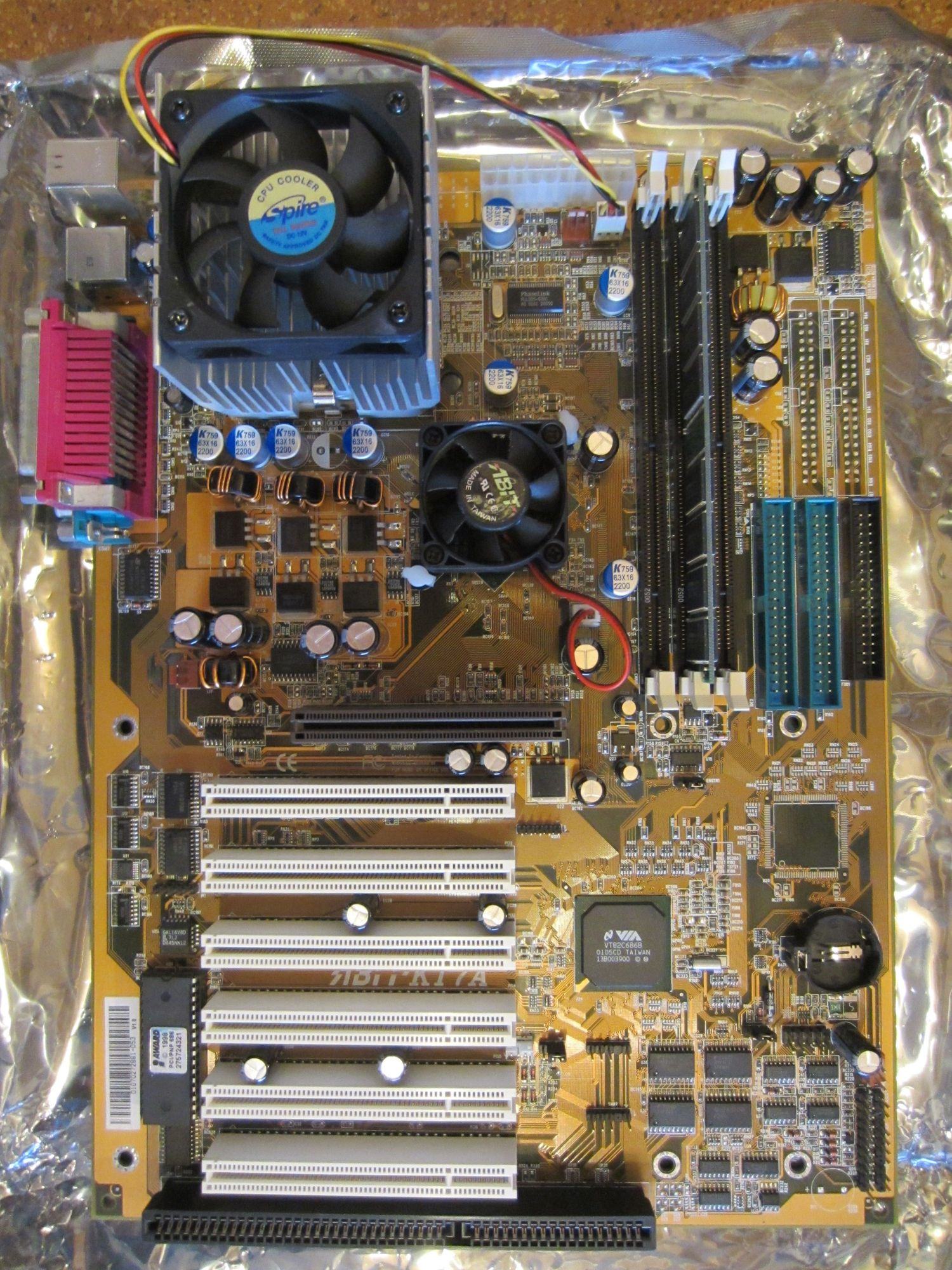 Abit KT7A (Sockel A) besorgt ein paar Minuten laufen lassen > keine Pixelfehler, BIOS ok > gleich weiter und von @maxpower1984 einen recap machen lassen wobei alle Elkos getauscht wurden.