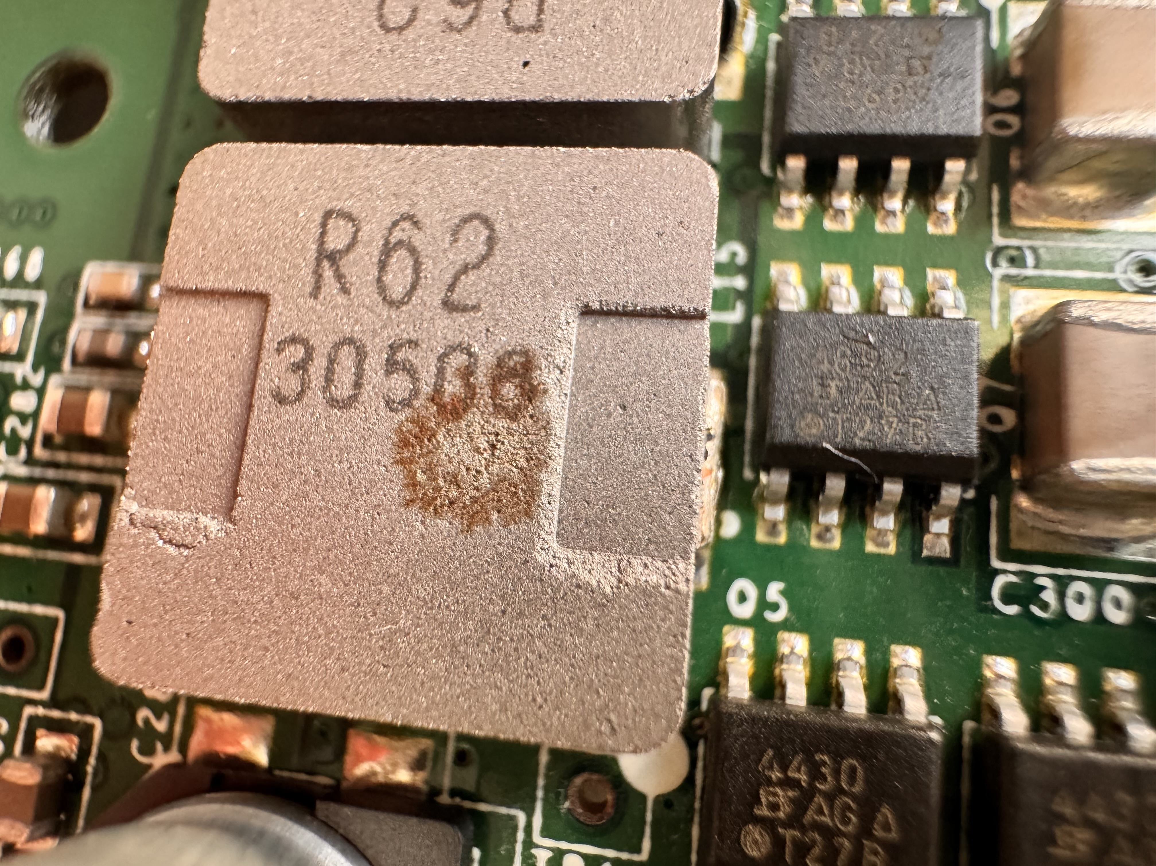 Das sind Spulen. Der Fleck ist nur auf dem Gehäuse. Der dürfte kein Problem sein ^^Was ist das für ein Bauteil? Und ist der braune Fleck eine Außeneinwirkung oder ist da was abgebrannt innen? Habe es ausgiebig versucht zu reinigen, besser bekomme ich es nicht weg.