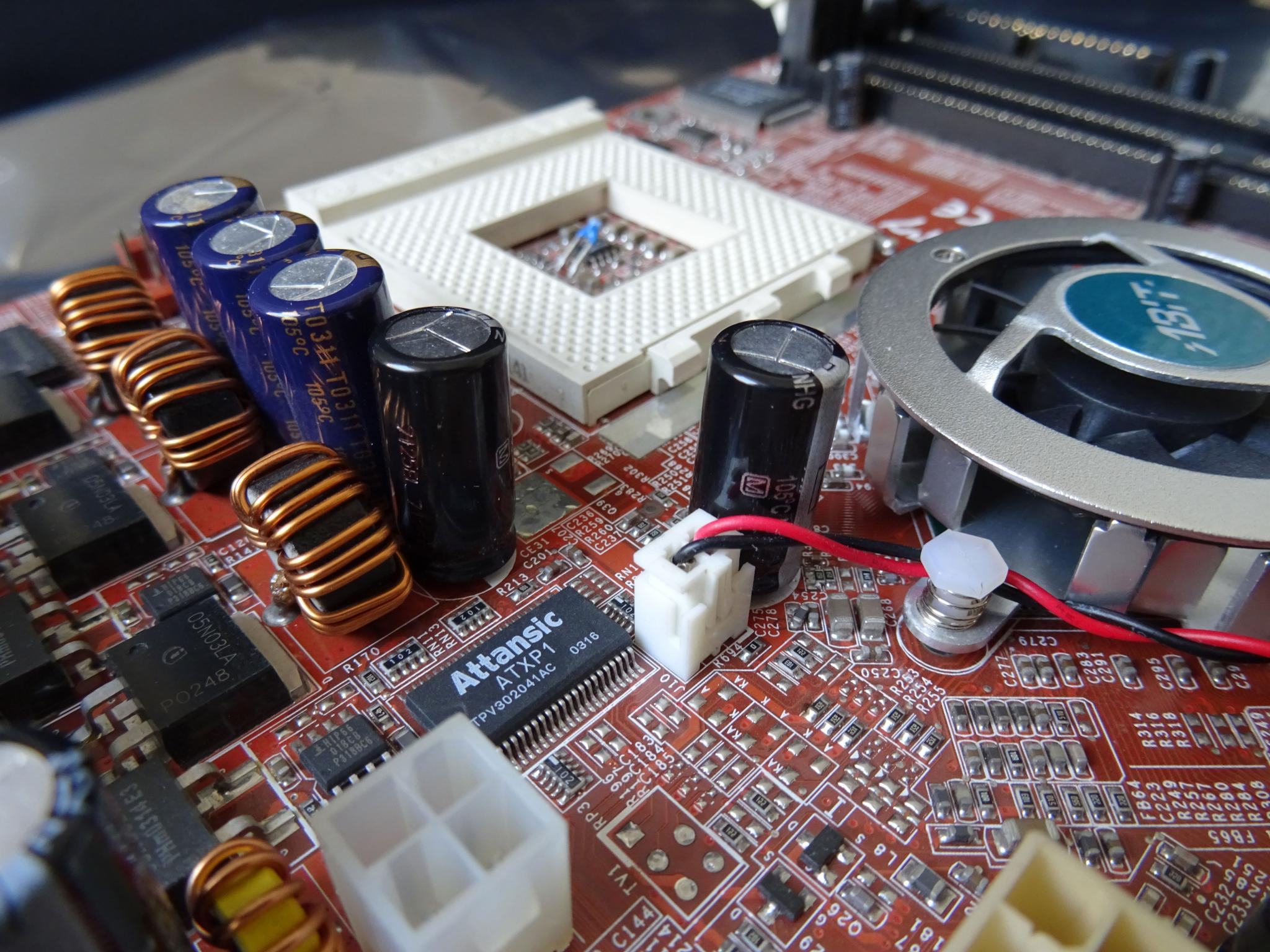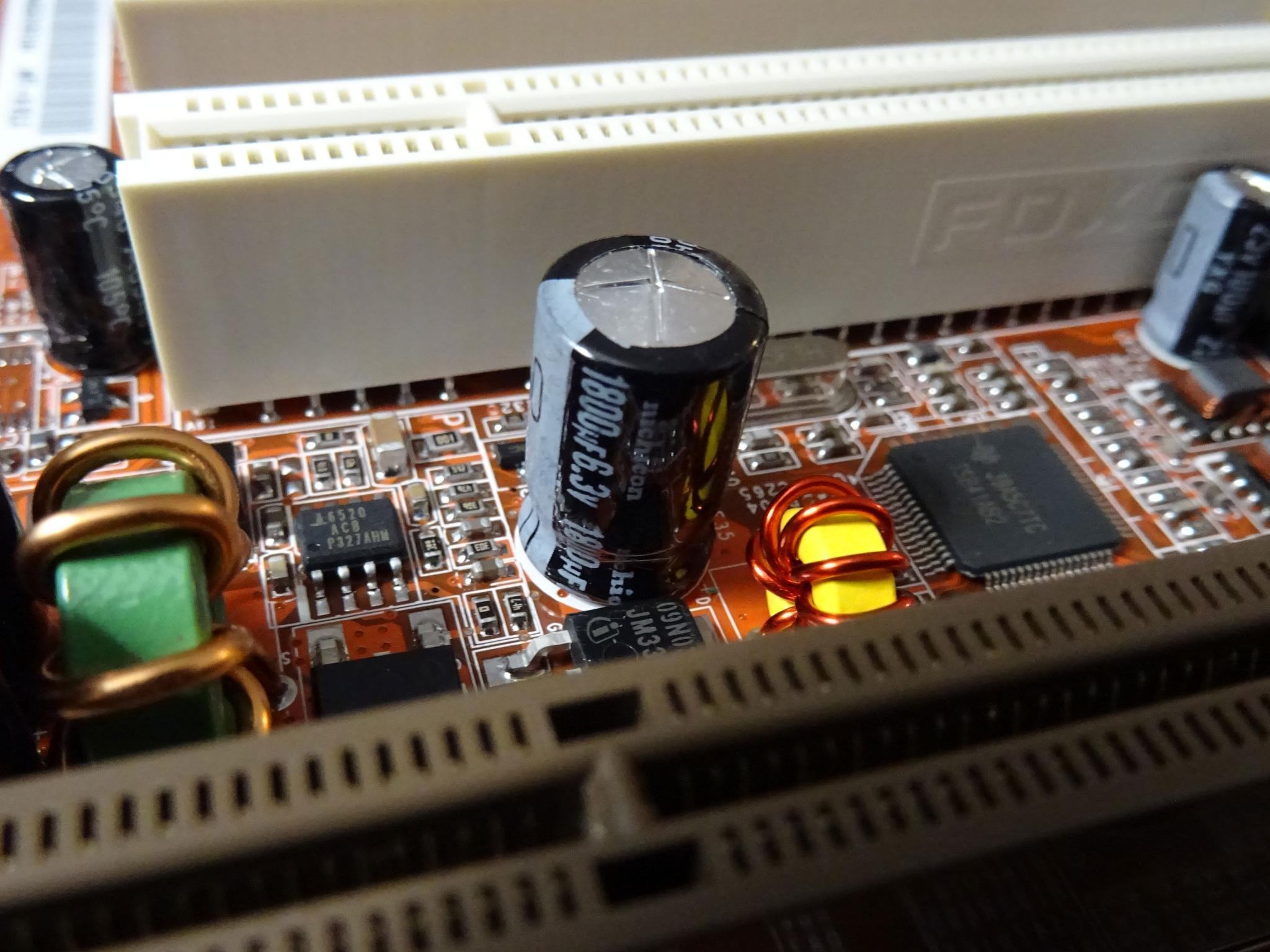 Dann noch eine neue Sache... mein NOS NF7-S 2.0 ist heute gekommen. Dachte erst "wow" kein Elko muckt auf, aber natürlich... einer sieht ungesund aus. Hier mal ein Bild davon. Kann mir jemand passenden Ersatz empfehlen?