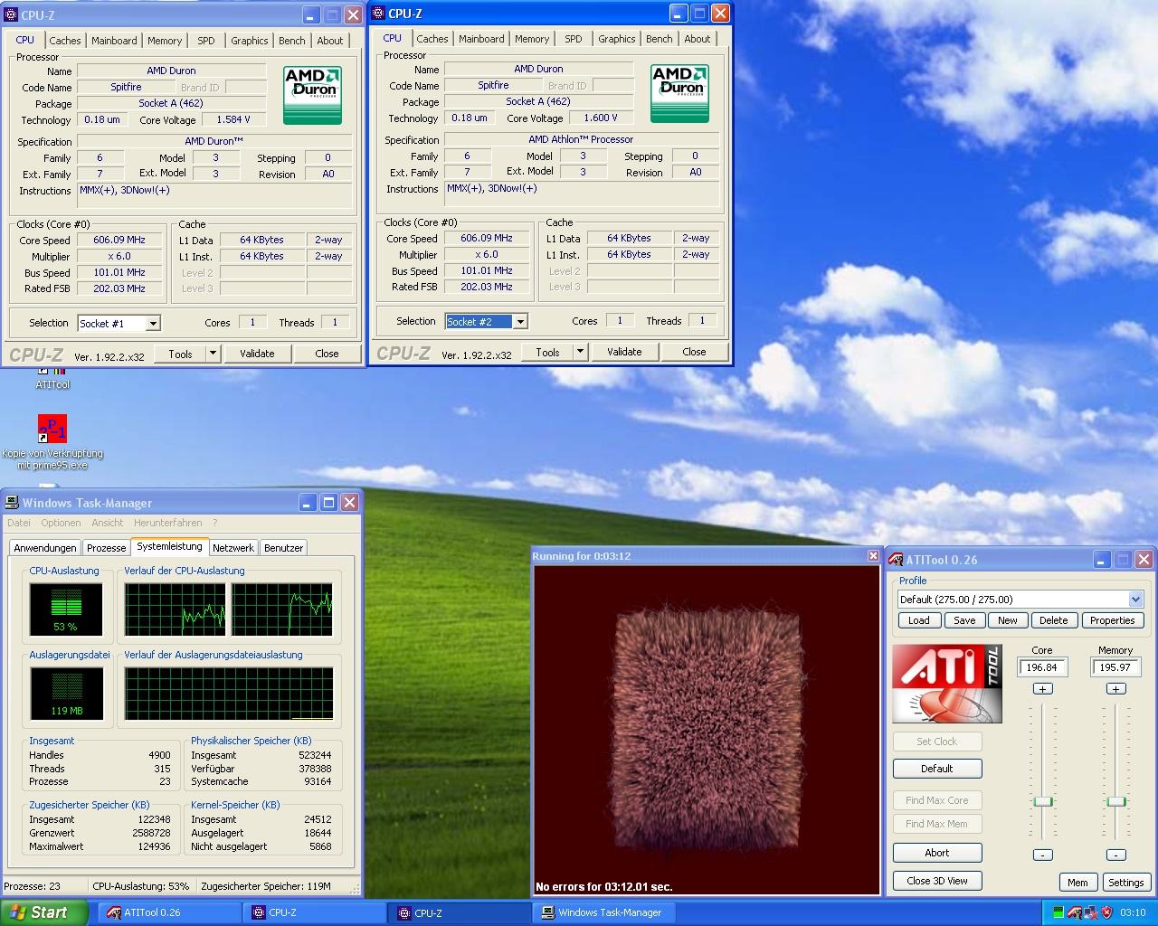 Das Tyan kann den Multi on-the-fly verstellen. Probier mal ob du eventuell sogar Multi 4 ans laufen bekommst, bei mir ging das am S2460. Manche Boards (z.B. LVMM2) packen sogar 3x. Zwei XP-M 2600+ FKT4C von 133x6 auf 133x15 und 150x15 hochtakten geht ebenfalls am Tyan. Das hat keinerlei Multiverstellung im Bios, deshalb muss man so tricksen. Es sollte nur der HPET (oder wie der komische Timer heißt) unter XP aktiviert sein, sonst gibt's in Spielen unerwünschte Nebeneffekte.