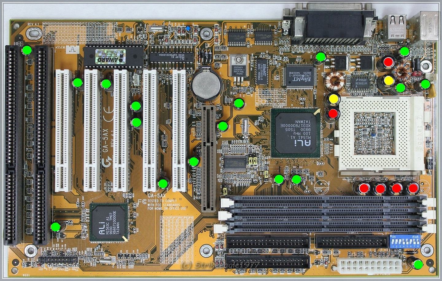 | grün | 5 | Sanyo WG 6,3v 3300uF | 10x23 | 12 | 2800 | Kemet A750MW228M1CAAE010 | 10 | 7000 |