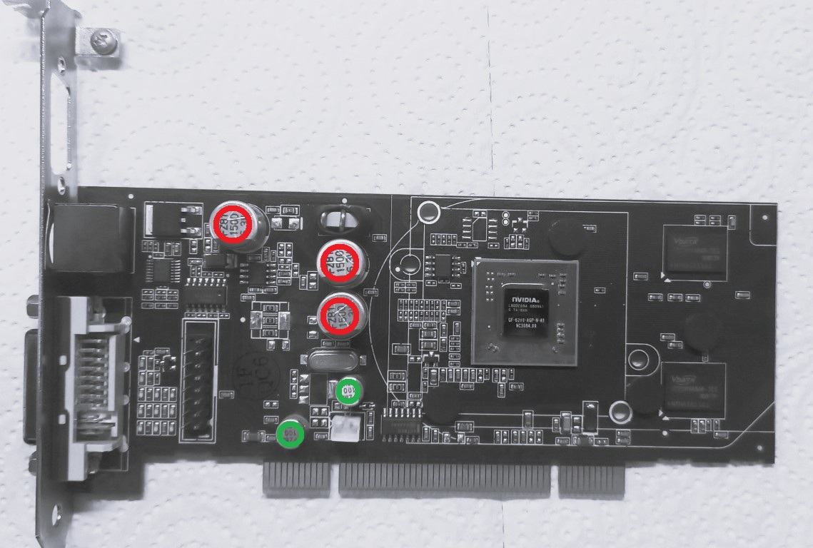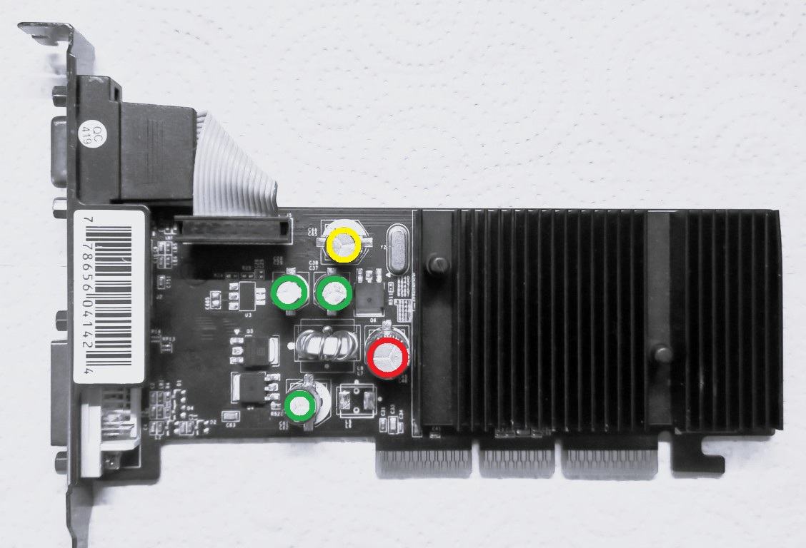 Achtung! Die 16v 470uF - Caps sind von den Werten her so "entspannt", dass es aktuell kein Ersatzmodell am Markt in idealer Höhe gibt! Die Kemets, die ich gelistet habe, kommen in 15mm Höhe daher. Ideal wären 12mm oder weniger. Diese Kemets fallen sofort auf der Karte auf. Probleme bekommt man dadurch nicht, aber es stört das Erscheinungsbild der Karte. Die nächsten Caps, die von der Größe her passen würden, wären die Rubycon 16ZLJ470M8X11.5 - die aber mit ESR75 bei 1200mA echt sportlich daherkommen. Wer auf Optik Wert legt, darf es gerne versuchen. Bei mir leistet die Karte mit "all Kemet" auf der AGP-Testbench hervorragende Dienste. :d