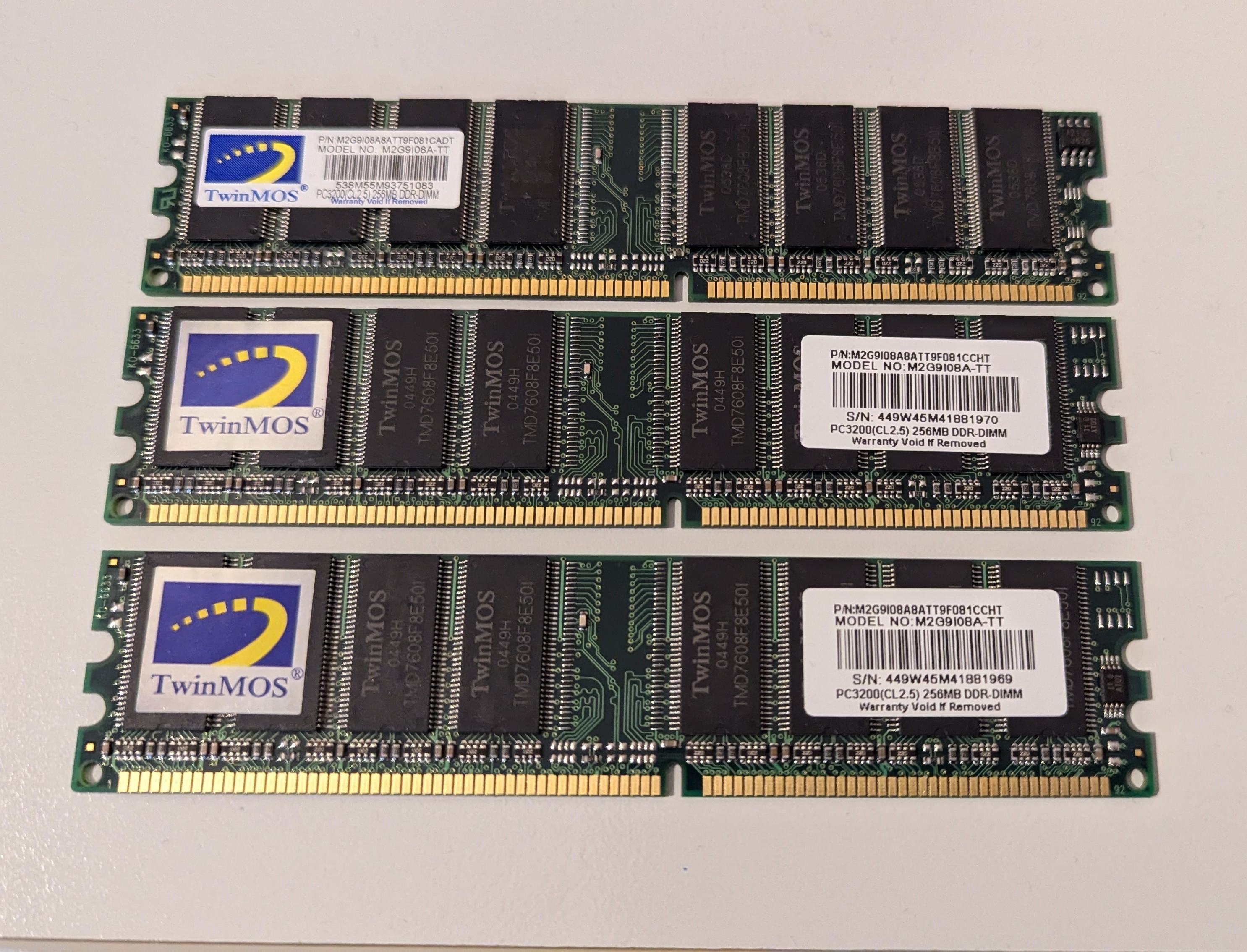 Habe hier 3x 256MB und die Riegel sehen auch noch echt lecker aus. Nicht abgegrabbelt oder lose Sticker.