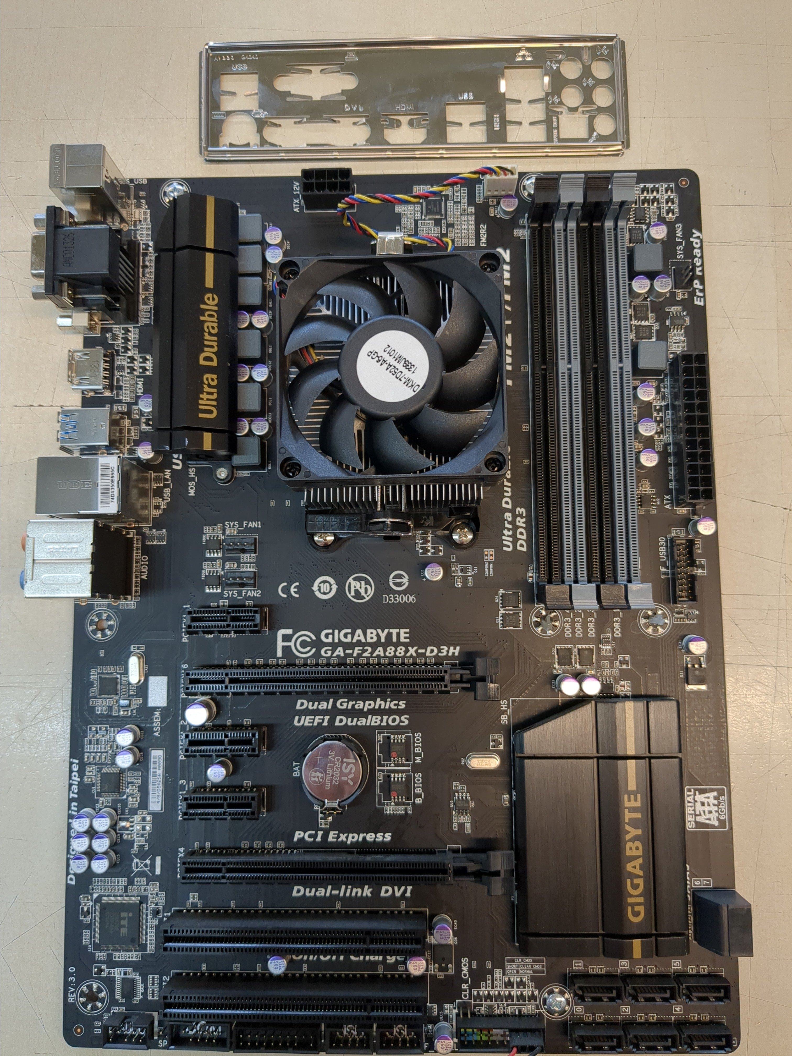 Ich hab vielleicht noch etwas schönes: ein Gigabyte GA F2A88X D3H mit AMD A6 5400K ( und auf Wunsch Standard-Lüfter).