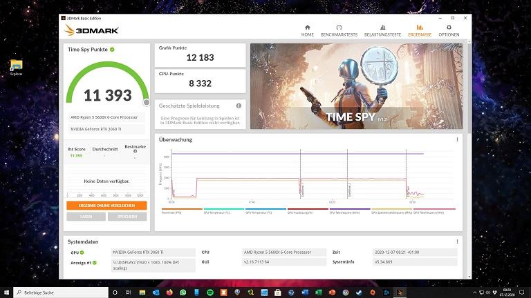 5) Afterburner und Timespy laufen lassen und folgende Werte notieren:
