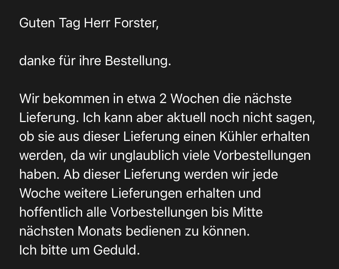 Geht mir genauso…. Wenige Sekunden nachdem man vorbestellen konnte hab ich den 5090 suprim kühler bestellt. Auch noch nichts 😅Ich habe bei alphacool direkt am ersten tag zu release bestellt... der war ja am 30.01