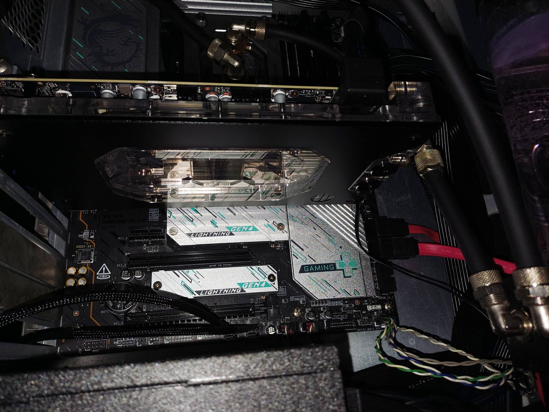 Ich hab mich an die Wärmeleitpads des Luftkühlers gehalten, die mit einer Ausnahme auch den gehobenen Arealen auf dem Wasserkühler glichen.