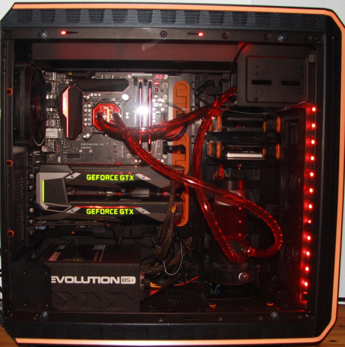 Der 360er Radi wird von 3 Noctua gekühlt, im Kreislauf ist im Moment nur ein I7-4790K.