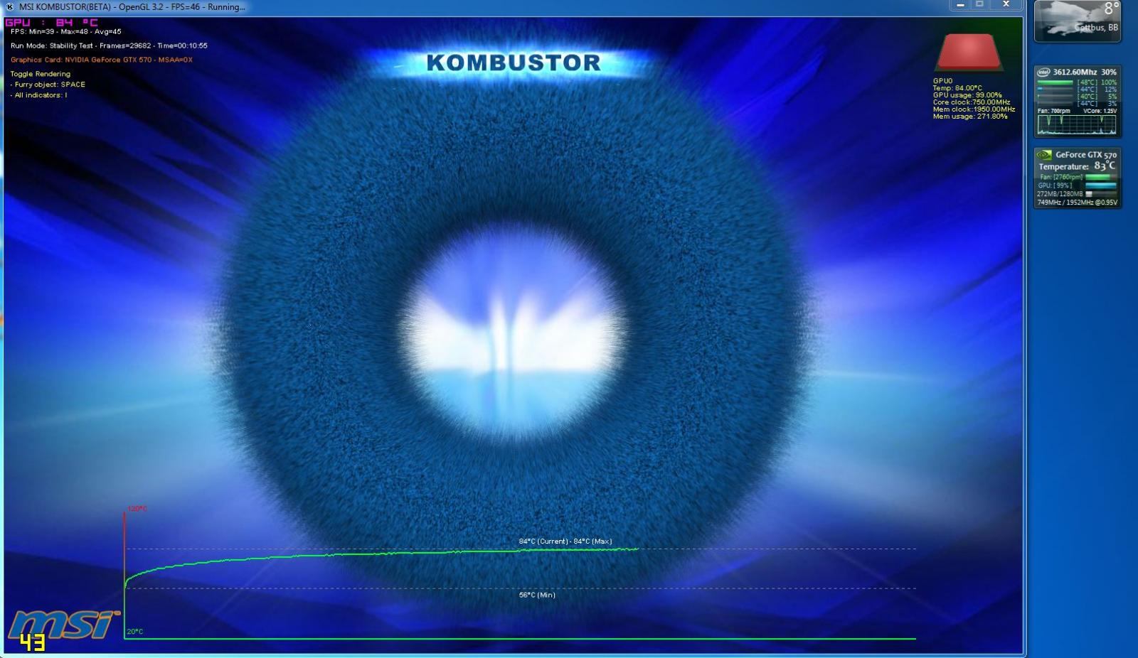 Nach 7min Kombustor Extreme mode ist meine auch bei 84°@ 64%Lüfter case zu.