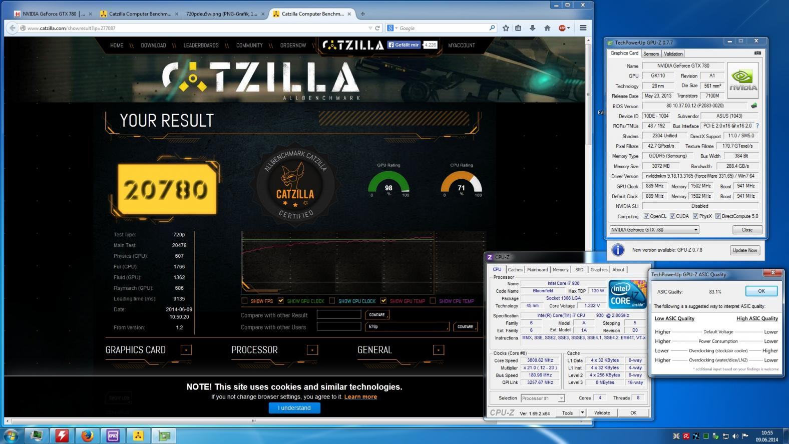 | Thunderburne | 4770K @ 4.5 GHz (Win 8 x64) | 14334 | Gigabyte GTX 780 Ti Ref. | 1.341 / 1.850 MHz @ 1,21v | 82,8% | Wakü | Screenshot |