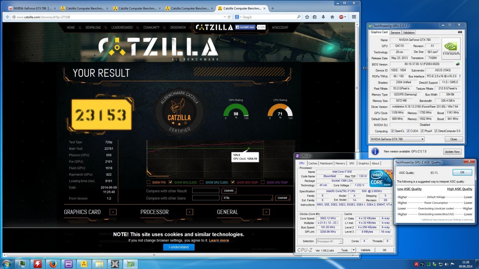 | Skillar | 4770K @ 3.9 GHz (Win 8.1 x64) | 28552 | EVGA GTX 780 Ti SC ACX | 1.356 / 1.852 MHz | 75,6% | Wakü | Screenshot |