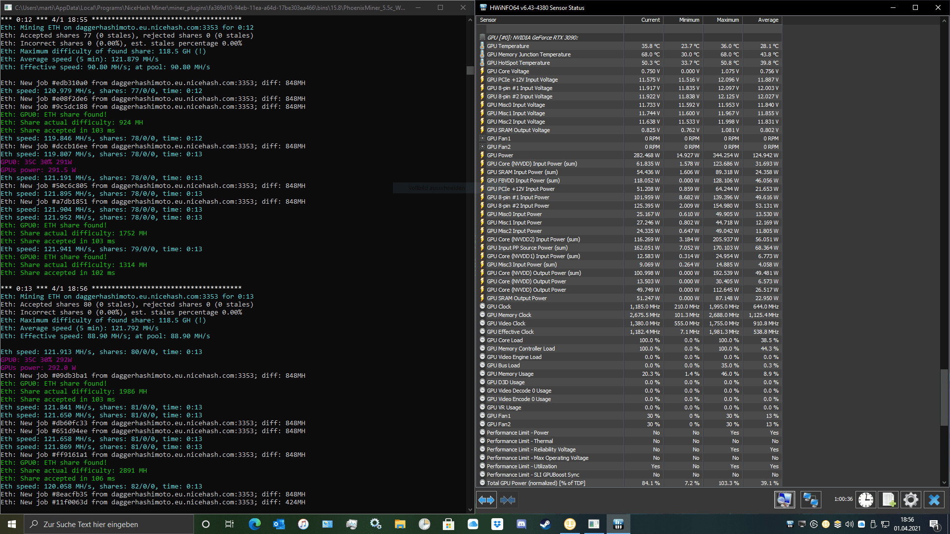 Undervolting PT Usage Tests mit meiner 3090 FTW3