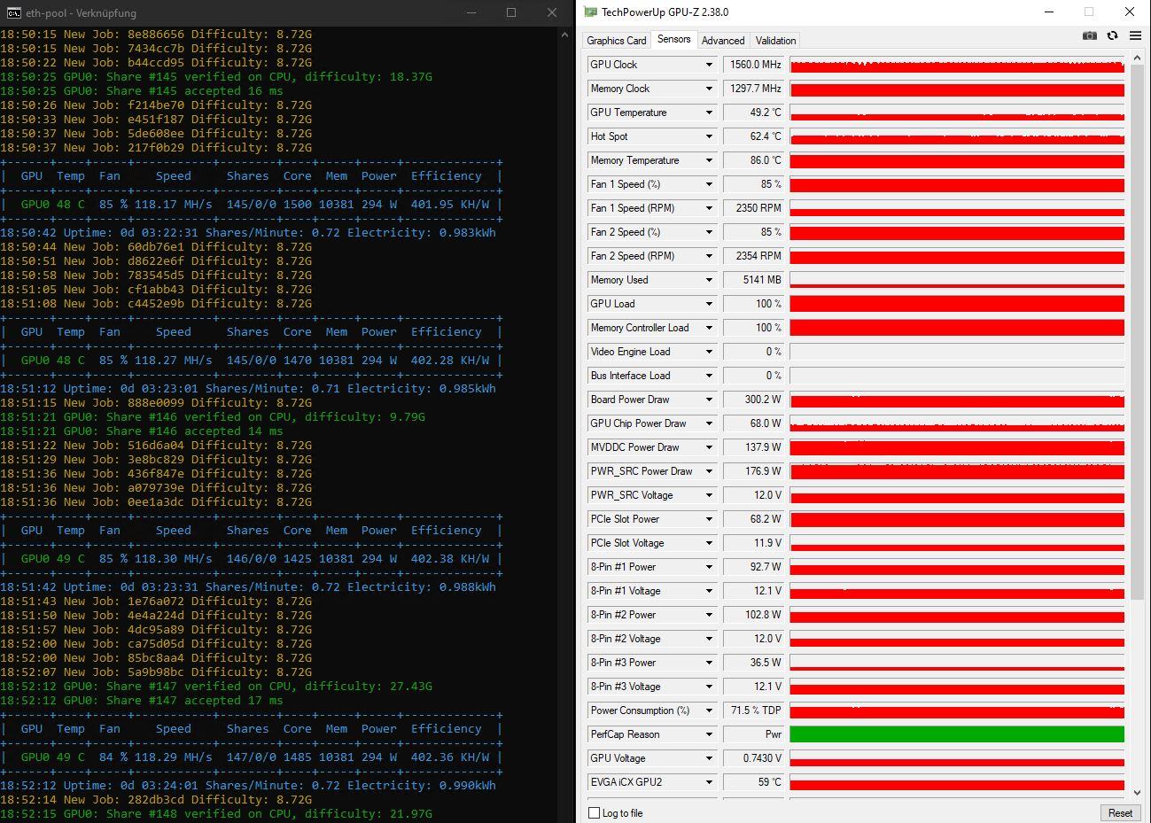 Aber die neue funktioniert wie ein Traum und ich habe ca. 66 Grad Memory Temperatur während dem Mining (+1300-1400 MHz).