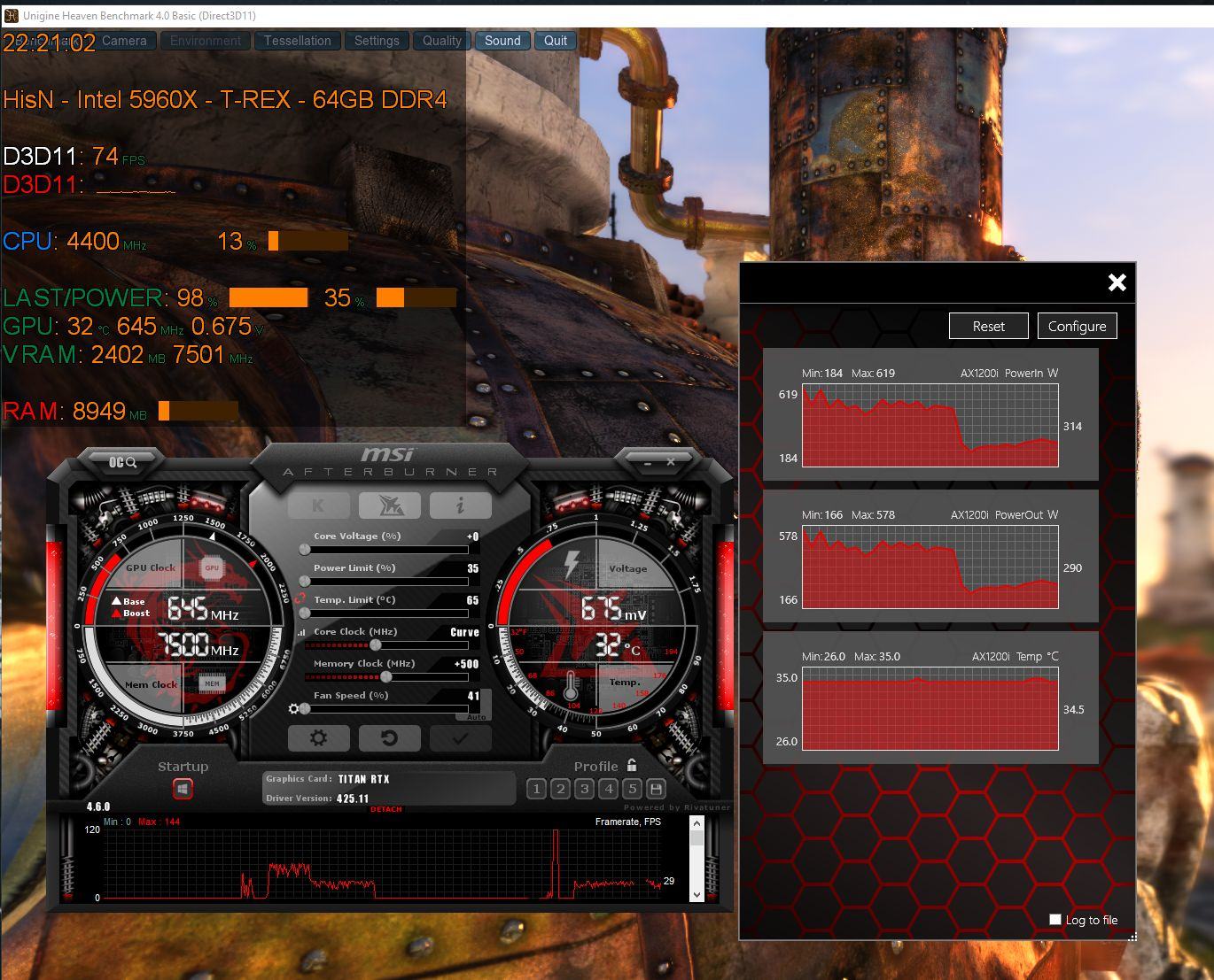Kurze Info wegen Stromverbrauch: 3090 Trio auf Anschlag + 9900K mit 1,36v und 5,4 GHZ = 665W für das gesamte System bei mir (SH). Dies kann natürlich bei euch abweichen. Eine Strix kann 100W mehr ziehen. Daher würde ich jedem, der OC betreibt +850W Netzteile empfehlen