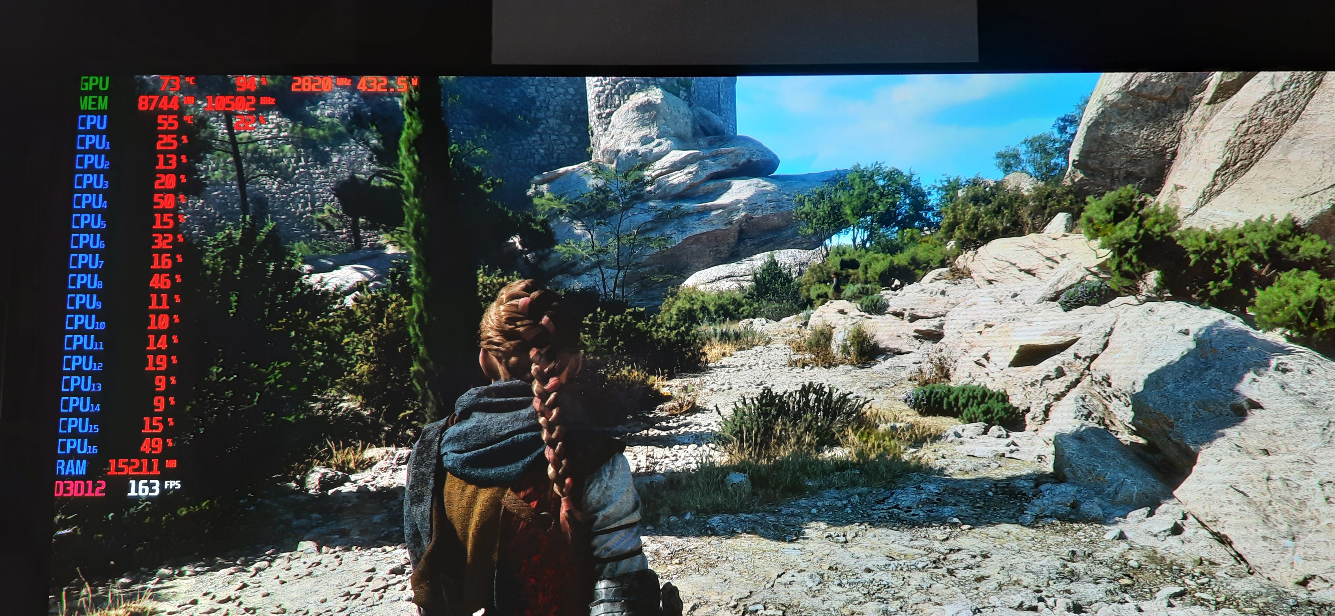 Direkt am Anfang (PT: Requiem) wenn man den Weg runter schaut in 5160x2160 mit DLSS + FG (ja ist ein Bild, wollte es schnell per Telegram wegschicken deshalb siehts auch so scheiße aus, aber ging schneller als ein Screenshot xD)