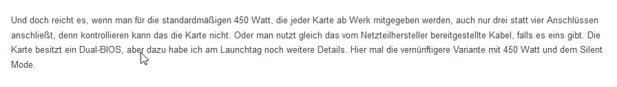 und die Karte läuft dennoch und hat dann ein PT von max 450 Watt