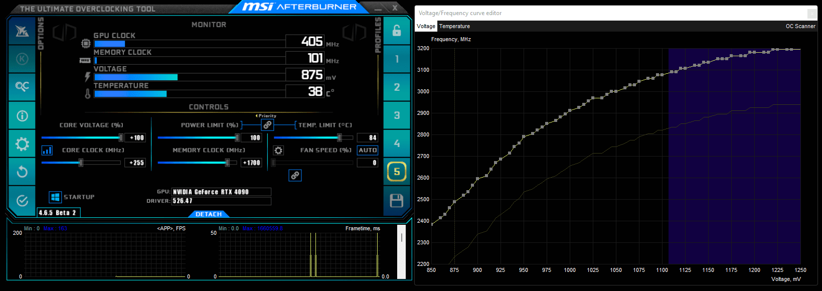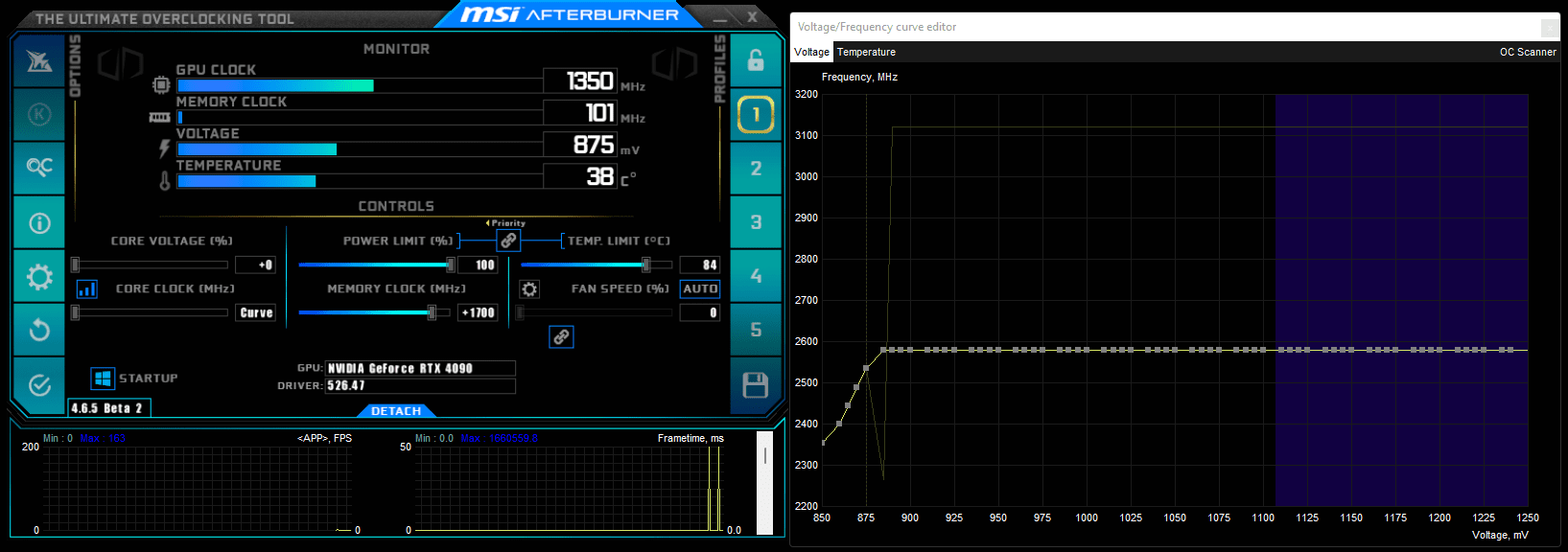 Das ist mir auch mit der 3090 damals schon aufgefallen, jedoch war da sowieso die Kühlung das Problem (unter Luft). Da man jetzt mit den Temperaturen keine Probleme mehr hat mit der 4090, will man halt auch die Leistung rausholen (wenn der Adapter ausgetauscht ist, versteht sich ^^). Dazu benötigt man logischerweise dann eine Reihe von UV-Profilen, am besten so im 25mV-Abstand (von 875 mV bis hoch zu 1.1V). Je nach Spiel bzw. Engine wählt man dann das entsprechende Profil aus, um den gewünschten Verbrauch zu erreichen und ohne ins Powerlimit reinzulaufen (bei mir 450 Watt).