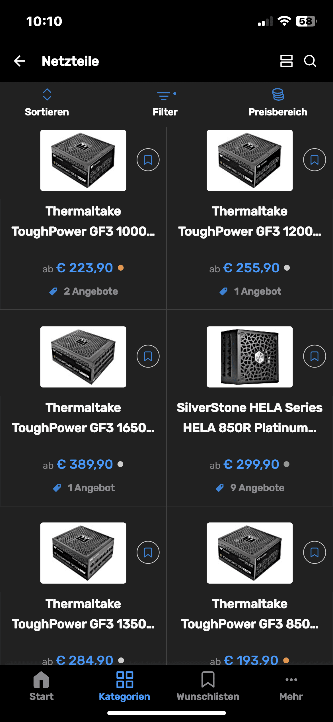 Ich habe 'ne Karte da und weiß nicht so recht was ich machen soll. Brauche eh ein neues Netzteil, aber die ATX 3.0 Netzteile sind ja noch nicht wirklich verfügbar in Deutschland. Außerdem habe ich schon "gemixtes Feedback" was die Thermaltake-Teile angeht gelesen.