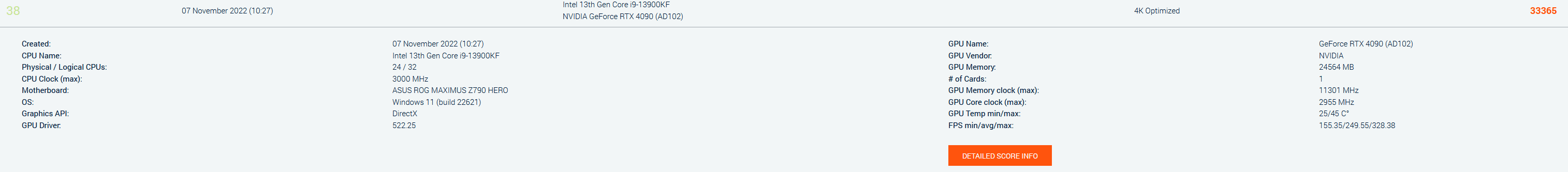 Hier ein Ergebnis mit 311 W undervolting der Frostbite. Speicher nur +800mhz.