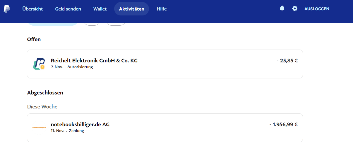 Hmm Paypal ist jetzt auf "Zahlung" gesprungen xD