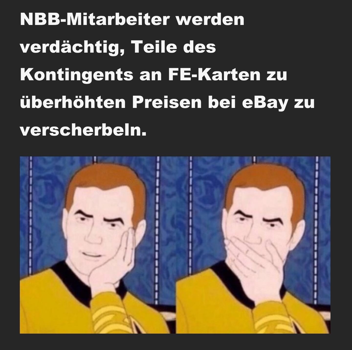 Das ist schon verdächtig. Ich hatte beim zweiten NBB Drop nach Release mit einem Verkäufer auf EKA geschrieben und er hatte die wohl tatsächlich schon zum Abholen vor Ort und die wurde am selben Tag gekauft. Der kann sie dann eigentlich nur aus dem NBB Store in Düsseldorf bei mir in der Nähe haben aber da kriegt man die Karte eigentlich nicht bzw. nicht noch am Tag an dem der Onlinekauf getätigt wurde. Schon merkwürdig.