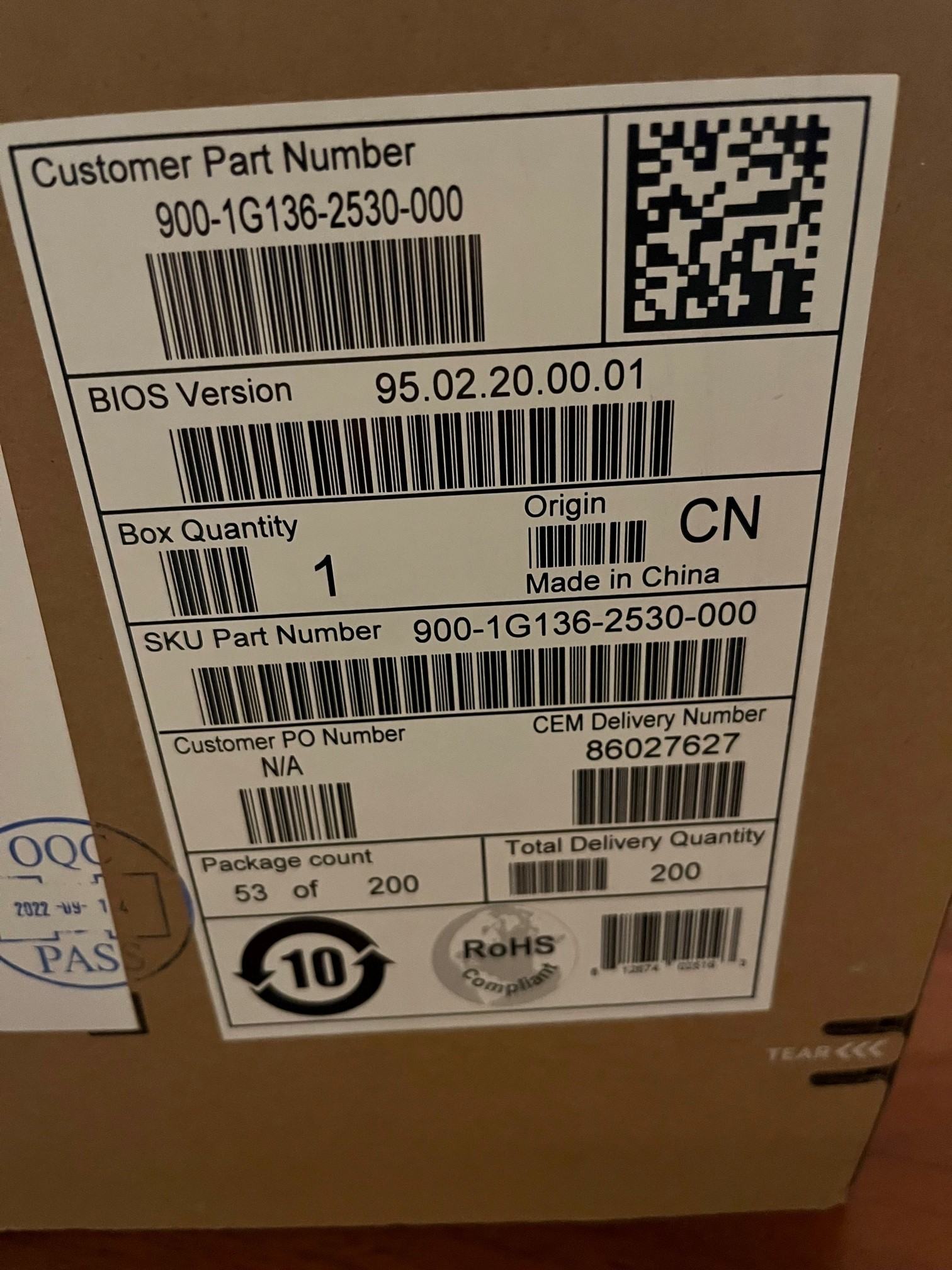 Es waren 200 Kartons, d.h. 200 Karten in dieser Sendung aus der Fabrik (sofern Direktlieferung an NBB) & Die Karte wurde schon im September hergestellt?? Kann ich fast nicht glauben.