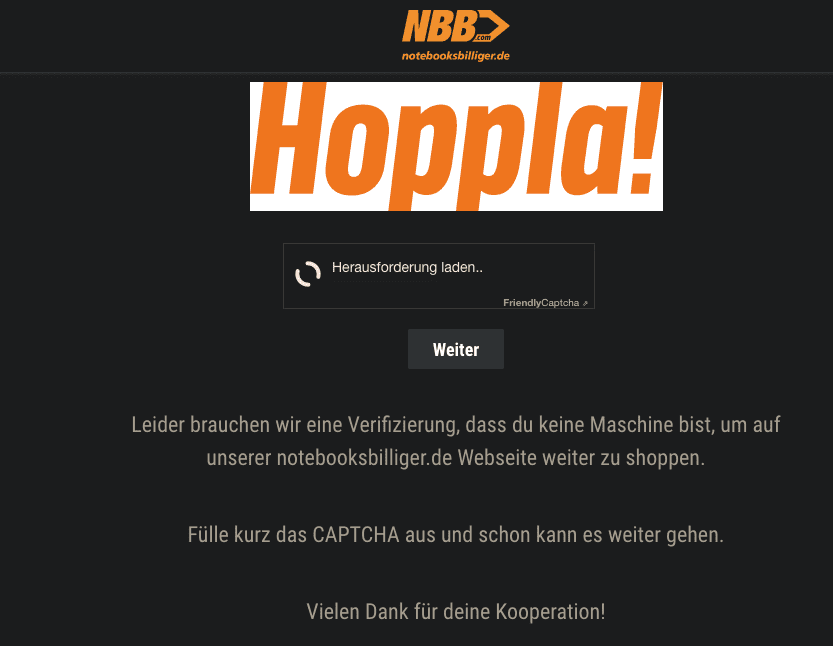 Bei NBB haben sie wohl beim Kaufprozess eine zusätzliche Captcha Abfrage eingebaut.