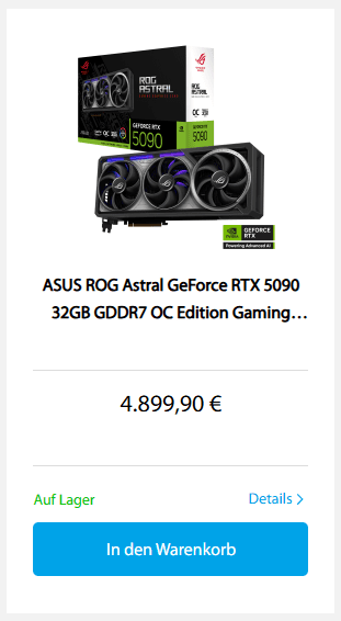 Wäre echt super, weil es gibt sicherlich einige, die nur eine 5090 (das beste oder nichts) oder nur eine 5080 (Frau droht sonst mit Schlägen) suchen 🙏