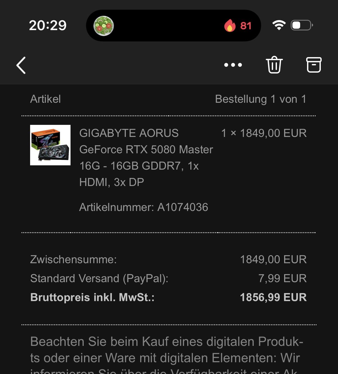 NBB hat wohl die Preise der 5080er angepasst. Zotac Alarm für 1599€, kurz darauf im Shop für 1499€.