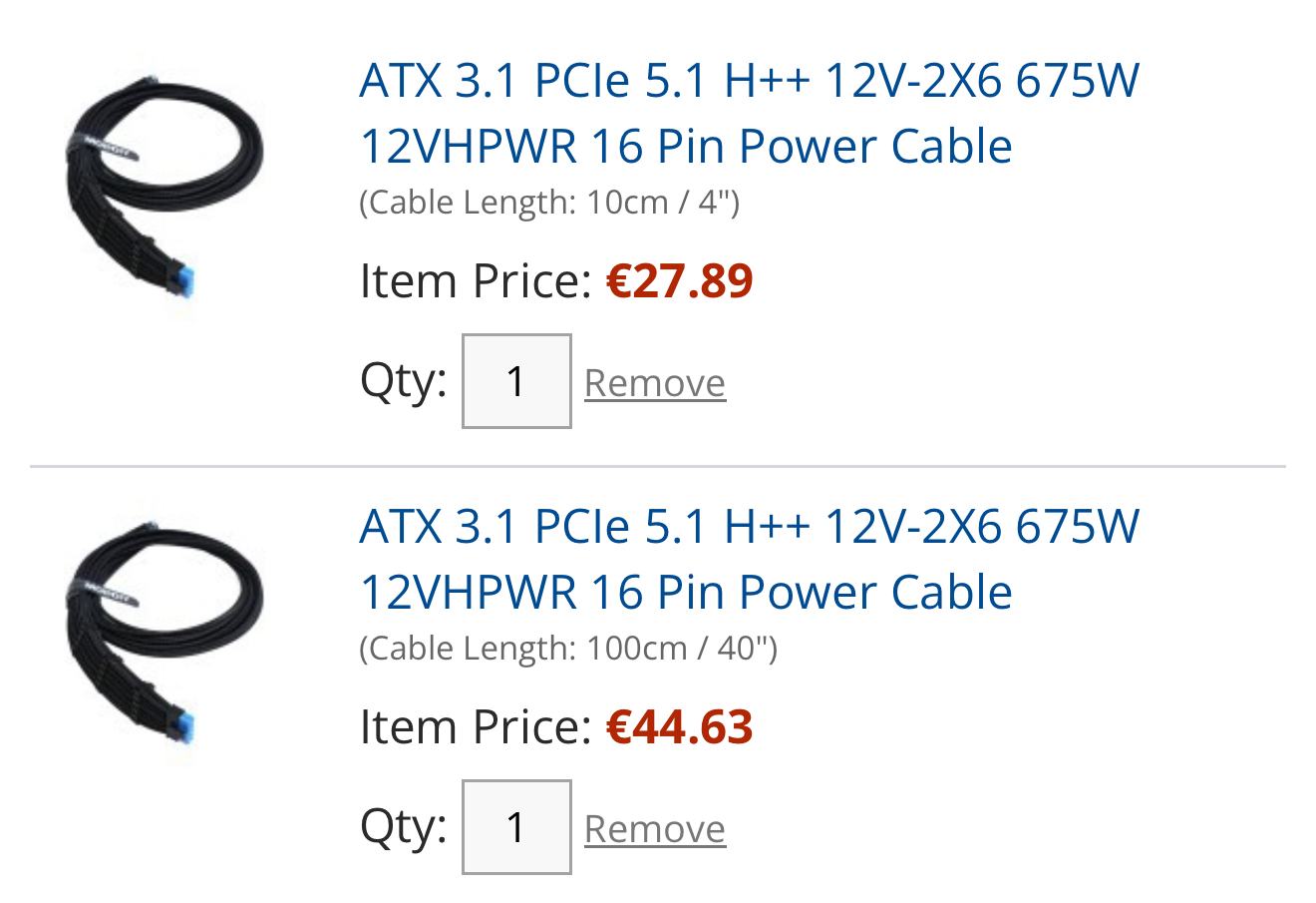 Zum Vergleich das Kürzeste (nur 10cm) und das Längste (100cm). Das Längste ist immer noch günstiger, als das Kürzeste bei CableMod