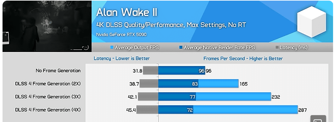 • Multi Frame Generation bietet mehr FPS mit minimaler Latenz.