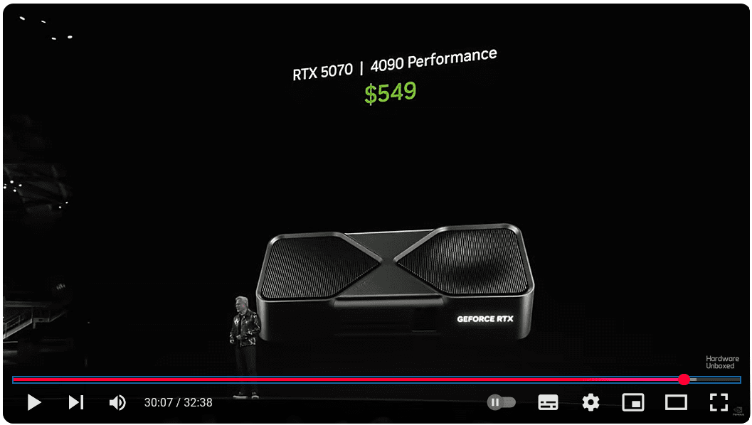 Ich hab mir den Live Stream angesehen Nachts und war bei der Äußerung (5070 = 4090) direkt äußerst skeptisch und hatte direkt KI Kram vermutet. Aber Manche glauben halt auch alles, egal wie unrealistisch es klingt. Gab es jemals ein Generationssprung bei dem eine neue 2 Stufen niedrigere Karte genauso schnell wie die Alte war? Die grobe Faustregel ist doch eher, dass die neuen Karten ca. auf dem Niveau des Vorgängers, nur eine Stufe niedriger sind. Sprich 5080 ungefähr 4090.