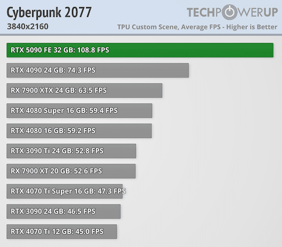 Eine gute Übersicht zwischen einer 5090 und 4090 (Quelle)