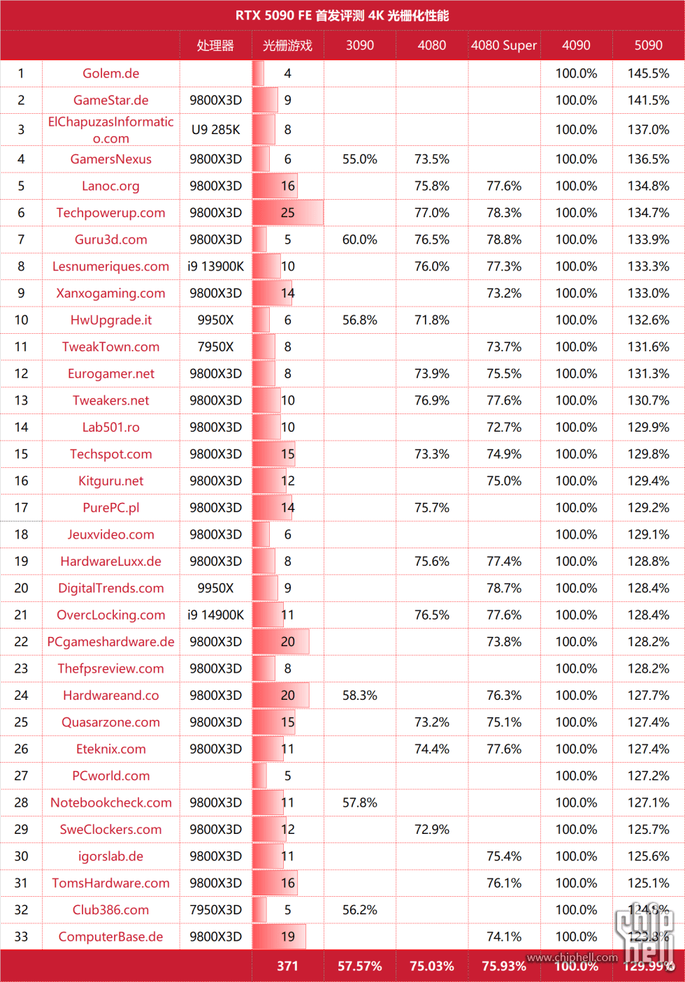 Eine gute Übersicht zwischen einer 5090 und 4090 (Quelle)