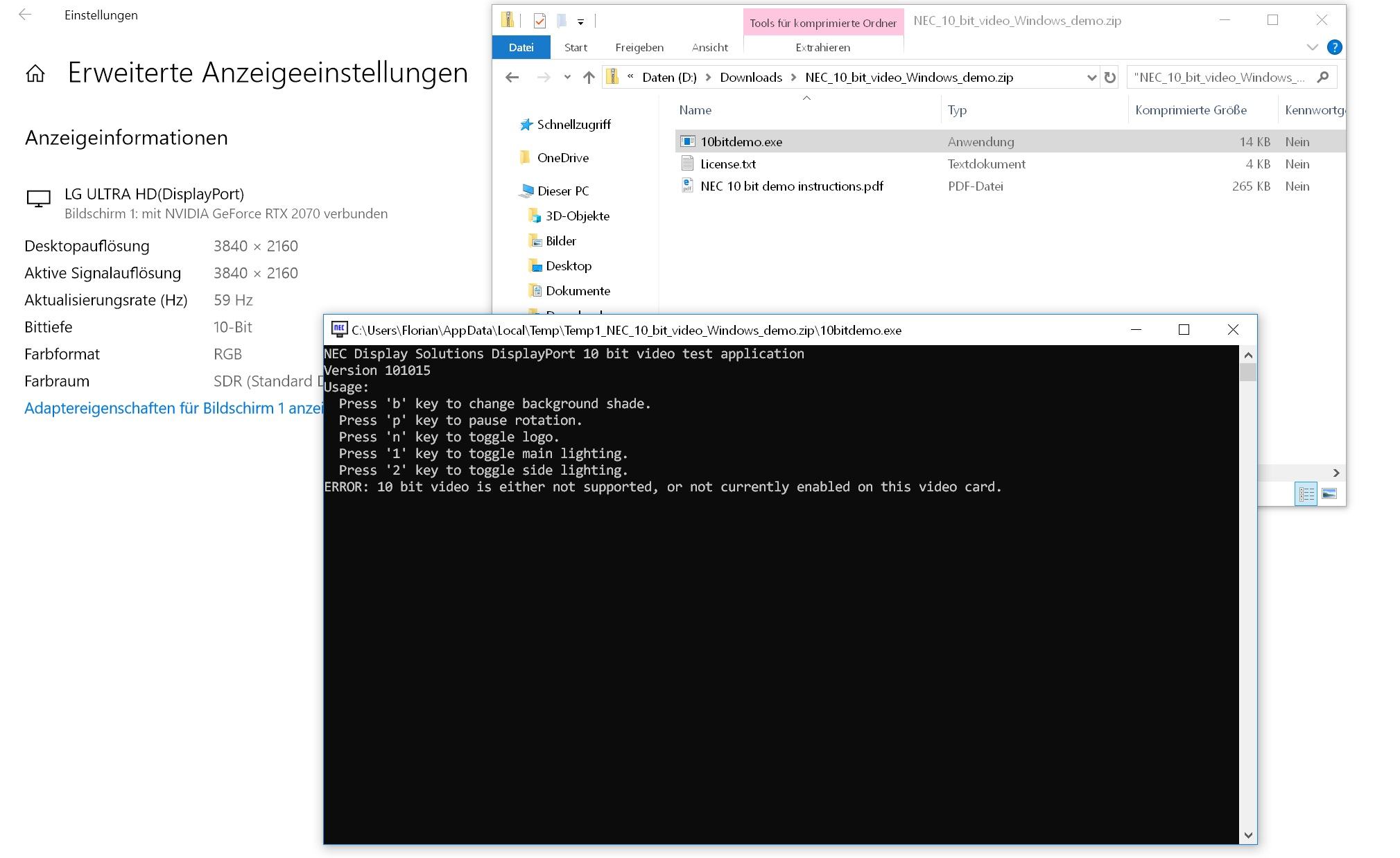 mit dem nec test tool wird auch angezeigt das 10bit nicht unterstüzt/eingeschaltet sind.