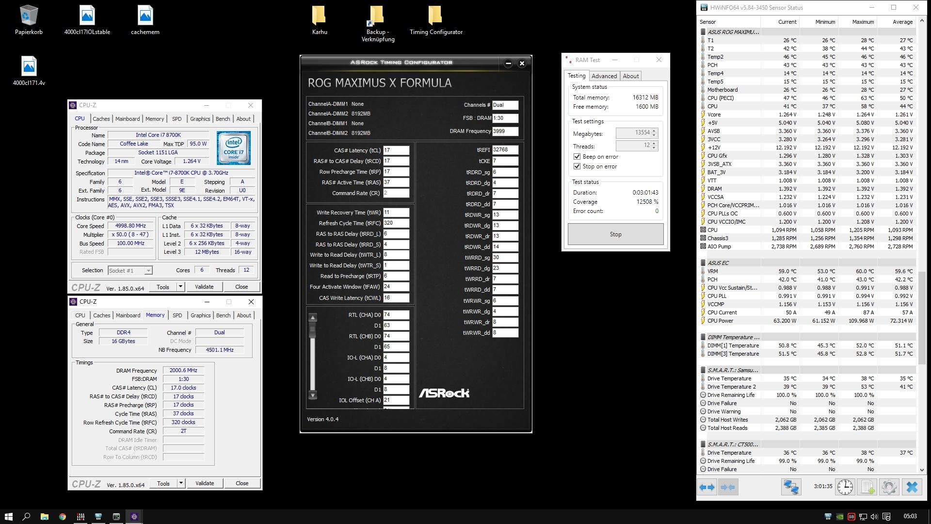 Was bringen mir 100 Mhz mehr CPU Takt, wenn der IMC schlechter ist? Merke ich jetzt gerade wieder bei meinem 8700K... Mein 8600K lief mit 4400 Mhz RAM bei Vollbestückung und mein jetziger 8700K macht schon bei 4133-4200 dicht.