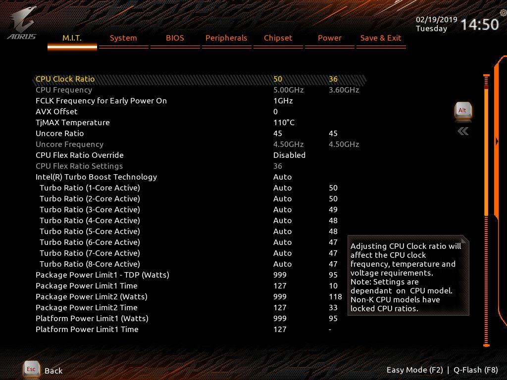 Ok. Dann muss ich aber die Settings insofern abändern, dass die Boostrate für 1-6 Kerne auf 47 gefixt ist?! Ansonsten boostet er nicht alles auf 4,7. Dieses Min/Max Cache Ratio hab ich auf meinem Z390 Aorus Pro nicht, kann nur per Uncore Ration das max festlegen.