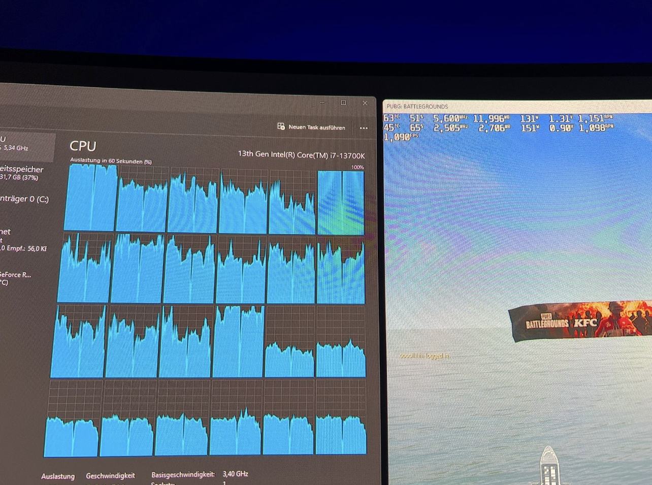 Extreme Szene, aber zeigt wie sehr eine CPU im CPU Limit belastet werden kann. PUBG in 2000x900 lowest Details.
