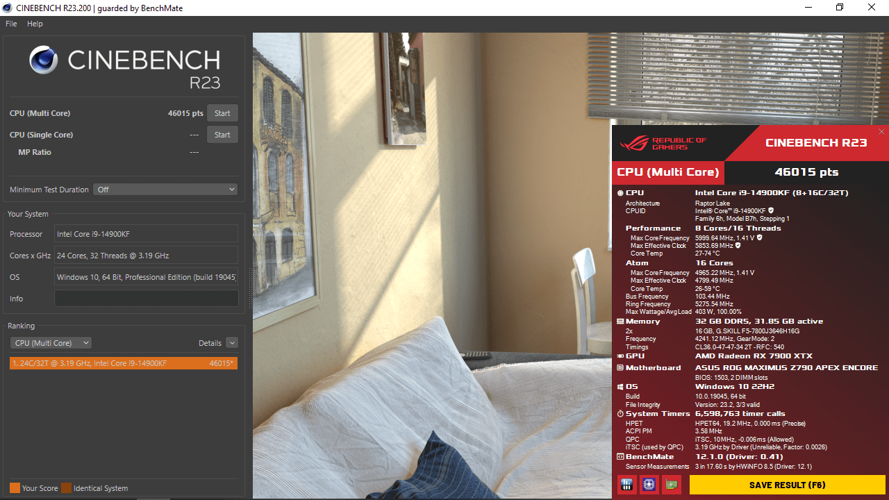 Bild 1 hat HT on. (6/4,7GHZ) und da war ein run @ 37K. Sehe grad Bild 2 HT off. Da weiß ich aber nicht ob 38,5K @ 24 Threads 6,2/4,9GHZ passen.